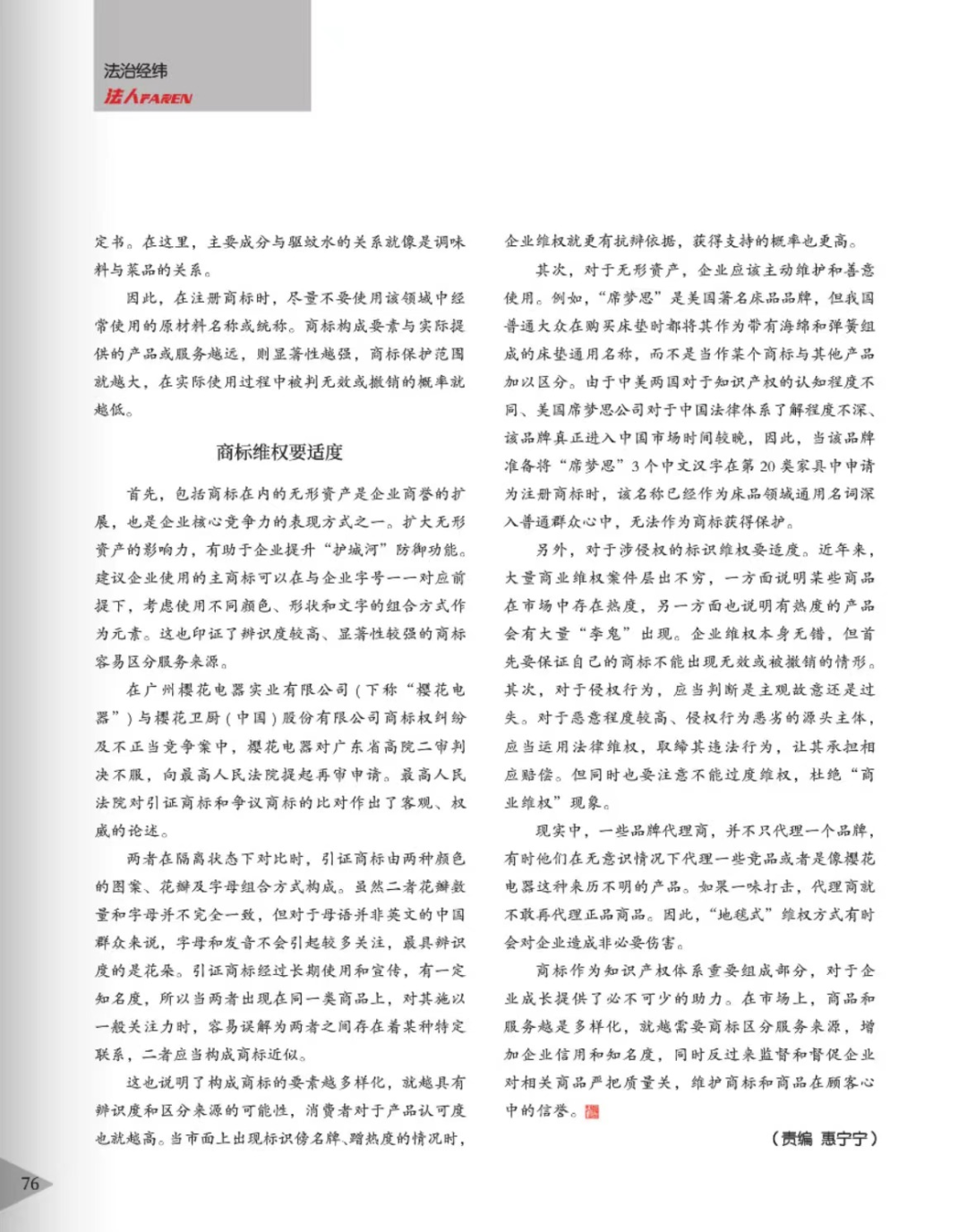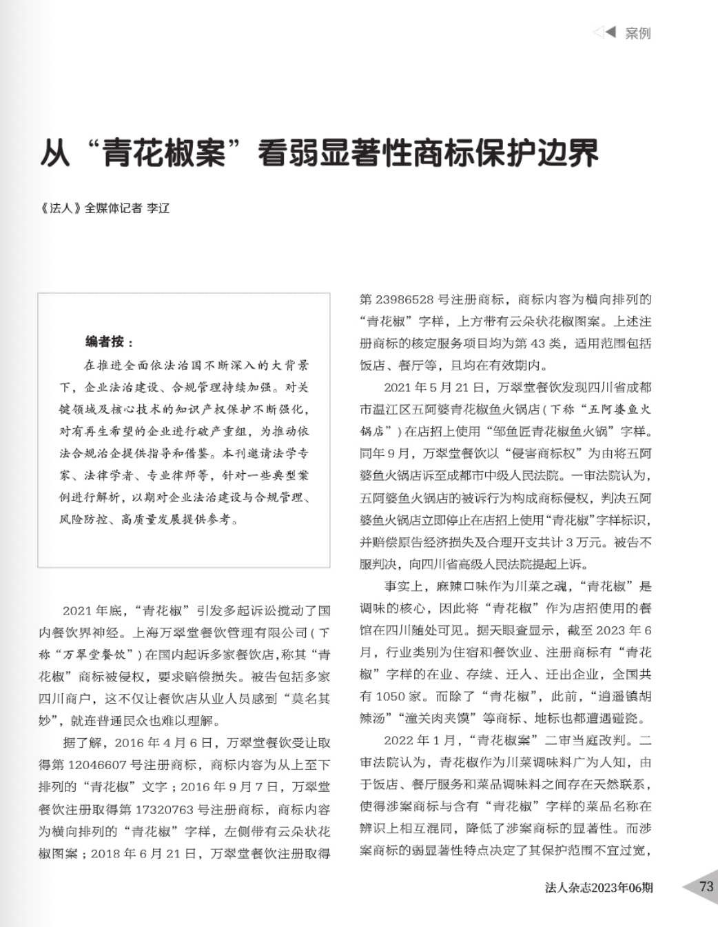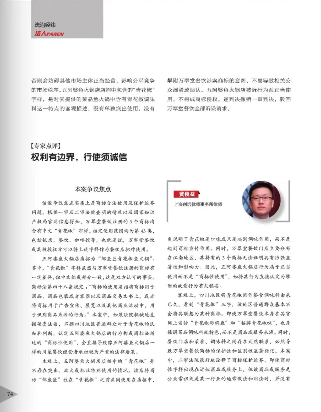 双鸭山辉知简讯 | 辉知队黄俊益律师应“法治日报”旗下杂志邀请,就“青花椒”案发表专家点评